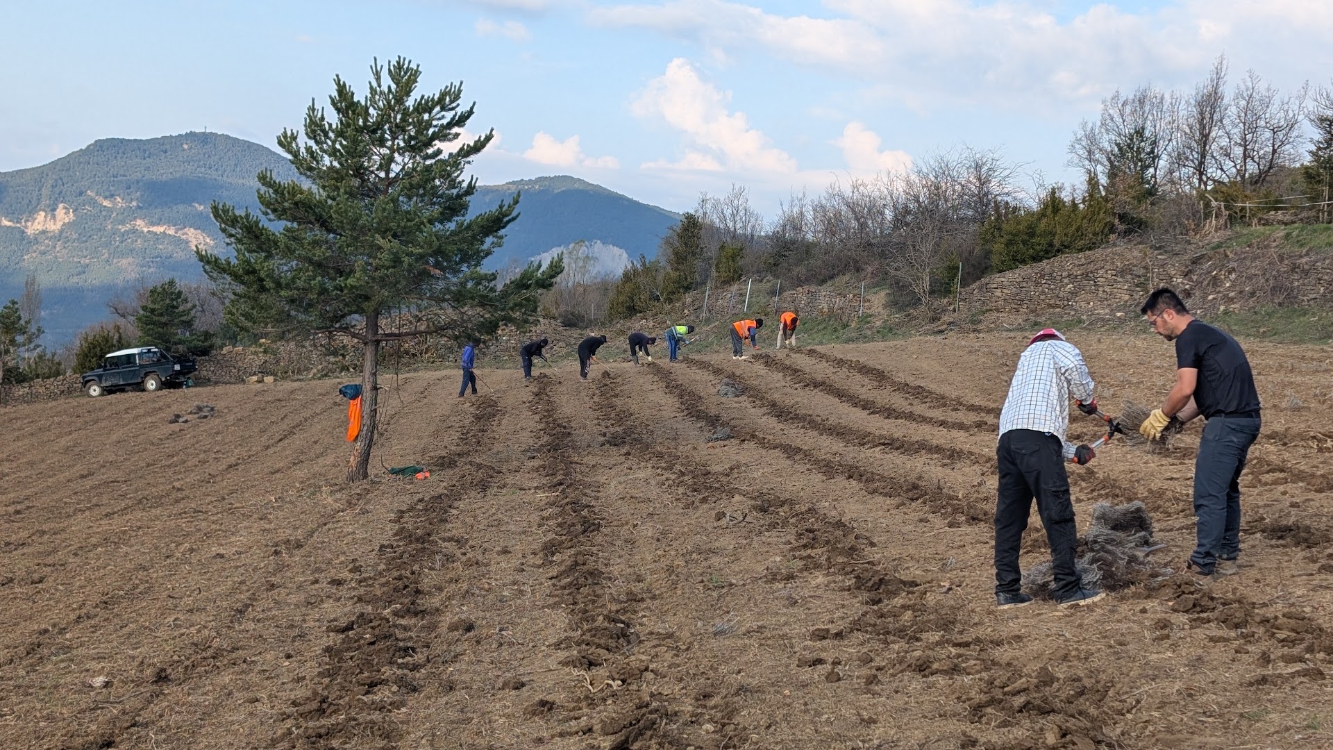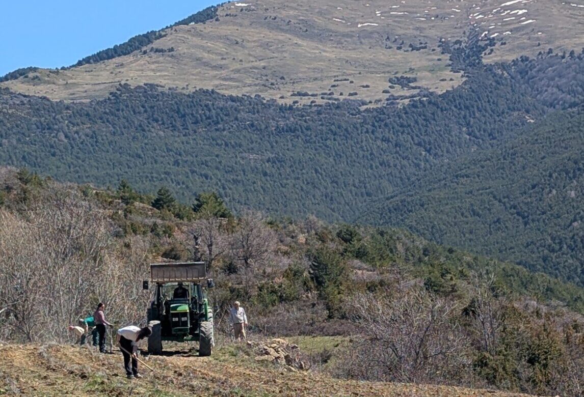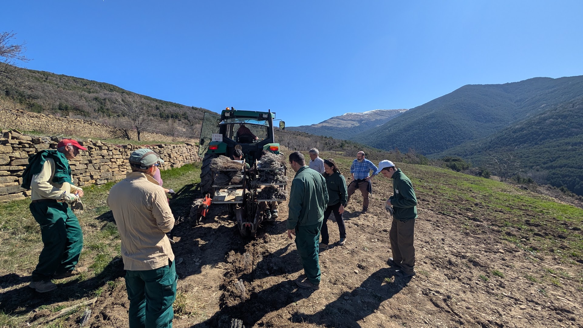 Para lograr estos objetivos el proyecto cuenta con la implicación de Ignacio Guallart Balet, empresario y emprendedor zaragozano con raíces en el Valle de Tena. Tras una trayectoria en multinacionales vinculadas a la movilidad ecológica, el embalaje sostenible y la economía circular, Guallart apuesta por revitalizar el territorio pirenaico a través de iniciativas innovadoras que combinan sostenibilidad, diversificación agraria y oportunidades de futuro. Juliana Navarro, investigadora del departamento de Ciencia Vegetal, y responsable de este grupo de trabajo 4 del proyecto LIFE Pyrenees4Clima explica que “Las fincas seleccionadas para el proyecto estaban abandonadas desde hace décadas y su acondicionamiento ha supuesto un reto técnico y logístico. Los trabajos han requerido superar la pendiente del terreno, la maleza arraigada, el despedregado intensivo y la conservación de antiguos muros de piedra de contención. Por ello la colaboración de Ignacio Guallart ha sido fundamental con el fin de introducir estas variedades que se adaptan al cambio climático”.