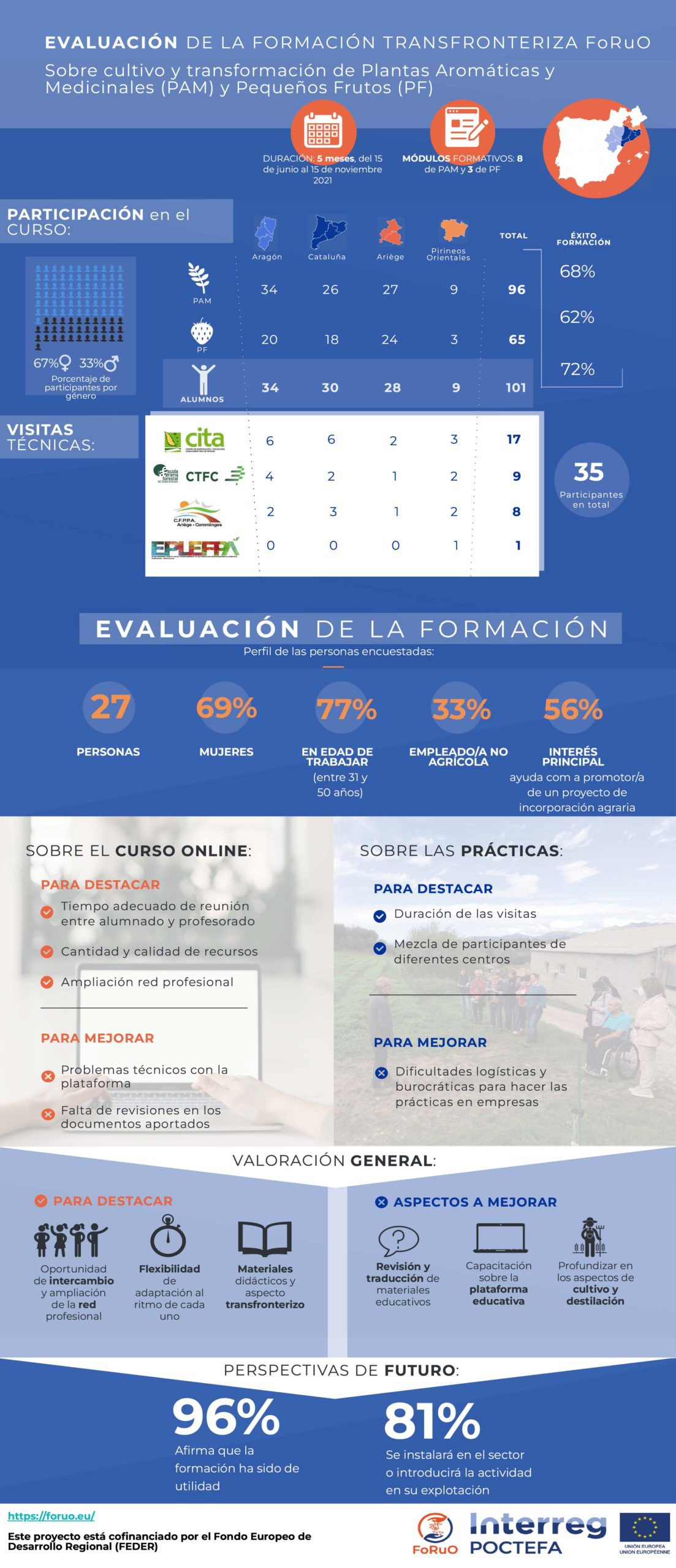 El proyecto “Formación para promover nuevas ocupaciones en el sector forestal y rural (FoRuO)” ha evaluado los resultados de los cursos de formación dedicados a producción y transformación de las Plantas Aromáticas y Medicinales (PAM) y de los Pequeños Frutos (PF) realizados durante el 2021. El pasado mes de diciembre las entidades que forman este…
